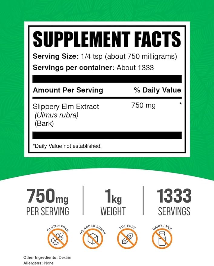 BulkSupplements.com Slippery Elm Bark Extract Powder - Slippery Elm Powder, Sourced from Ulmus Rubra Bark - Gluten Free, 750mg per Serving, 1kg (2.2 lbs) (Pack of 1)