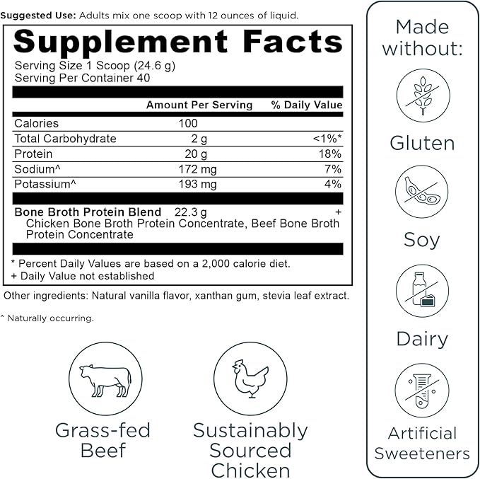 - Premium Formula: Formulated with chicken bone broth protein concentrate and grassfed beef bone broth protein concentrate for meaningful health benefits without all the prep of homemade broth.
