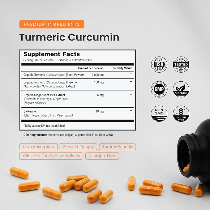 - Highest Potency Available - The most potent and pure turmeric powder with 95% curcuminoids. Our premium blend includes the patented black pepper extract BioPerine for maximum absorption & benefits.