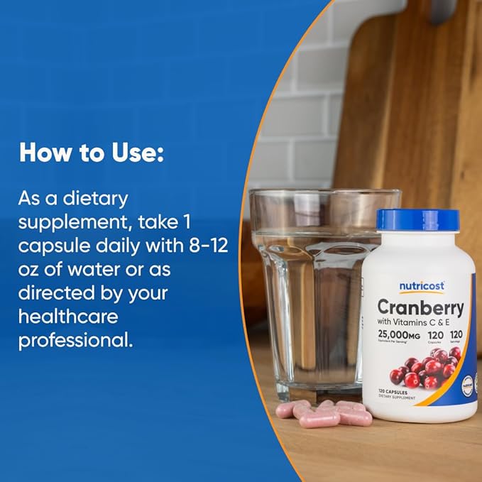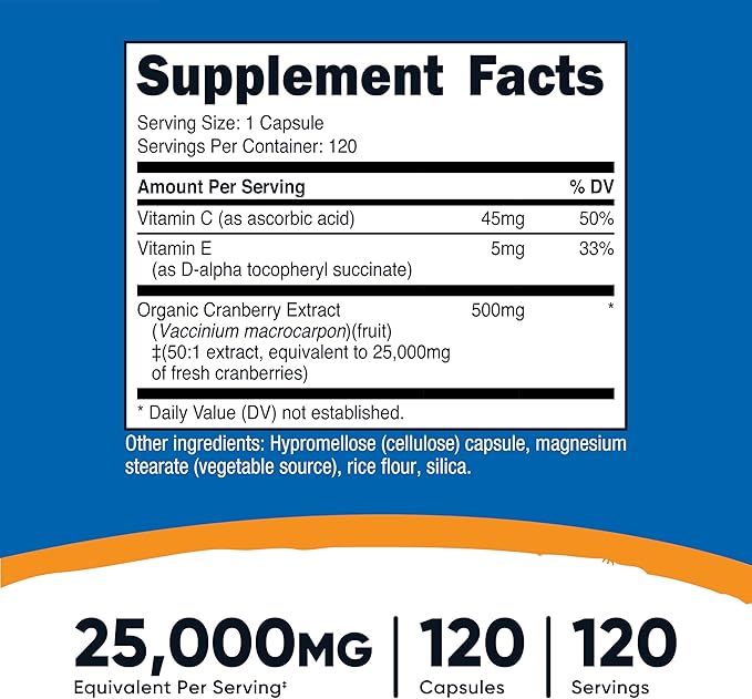 Nutricost Cranberry Extract (25,000mg) (120 Capsules) with Vitamin C & Vitamin E
