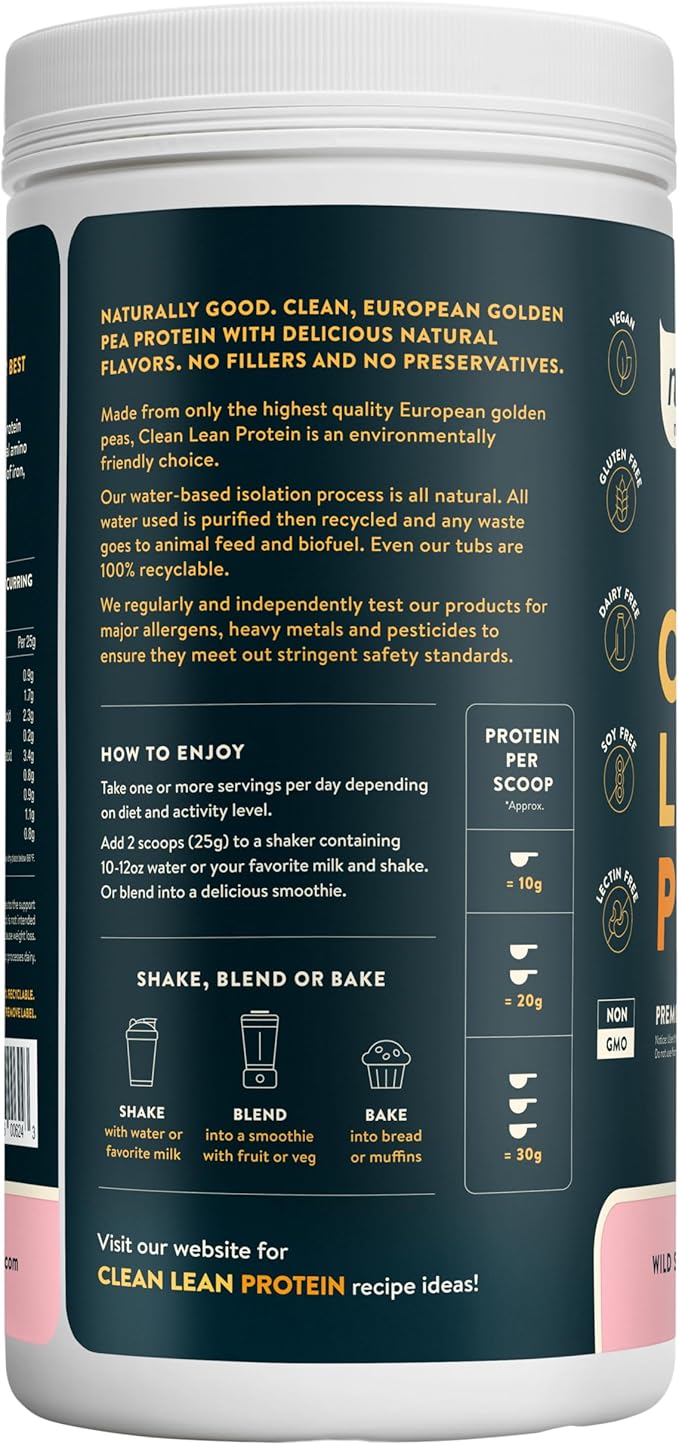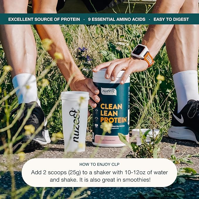Nuzest - Pea Protein Powder - Clean Lean Protein, Premium Vegan Plant Based Protein Powder, Dairy Free, Gluten Free, GMO Free, Naturally Sweetened, Wild Strawberry, 40 Servings, 2.2 lb
