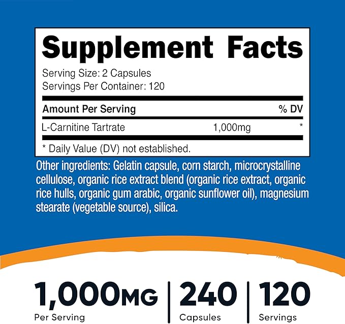 - 240 Capsules, Each With 500mg of L-Carnitine Tartrate