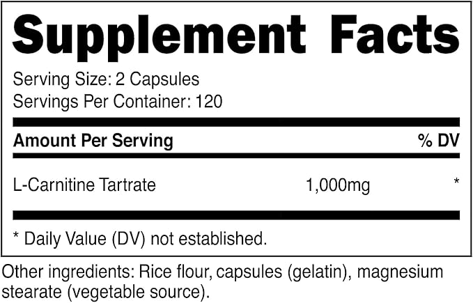 - 240 Capsules, Each With 500mg of L-Carnitine Tartrate