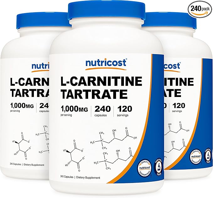 Nutricost L-Carnitine Tartrate 500mg, 240 Capsules - 1000mg Per Serving (3 Bottles)