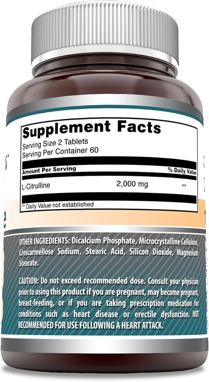 - L Citrulline 2000mg Per Serving 120 Tablets Supplement