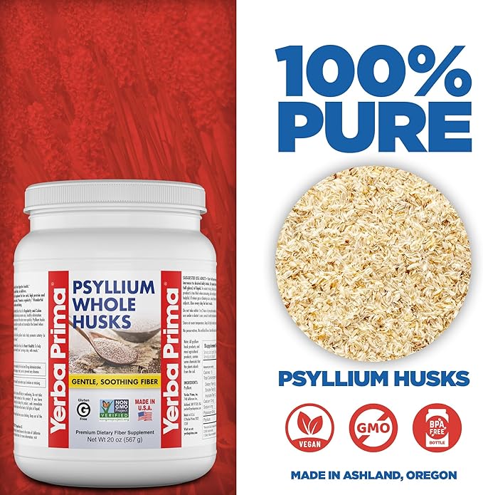 - ALL NATURAL DIETARY FIBER: Yerba Prima Psyllium Whole Husks 20 oz is Gluten Free, Non GMO, with no added sugars, artificial flavors, artificial colors, binders or fillers. Add the husks to water, orange juice, smoothies, cereals and baked goods.