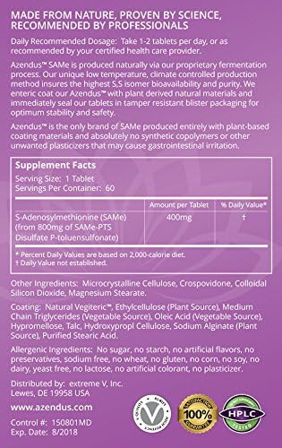 - Only SAM-e product formulated with the most bioavailable Butanedisulfonate form of SAMe Supplement; BEST form for MAXIMUM SAMe absorption