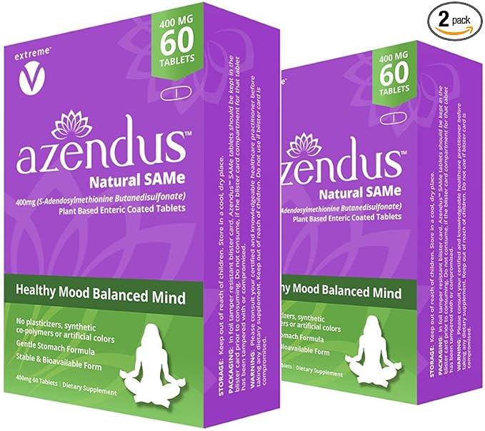Azendus Mood 400mg 2-Boxes of S-Adendosylmethionine Butanedisulfonate (SAM-e) 120 Enteric Coated Tablets - Vegan, Gluten Free, Soy Free