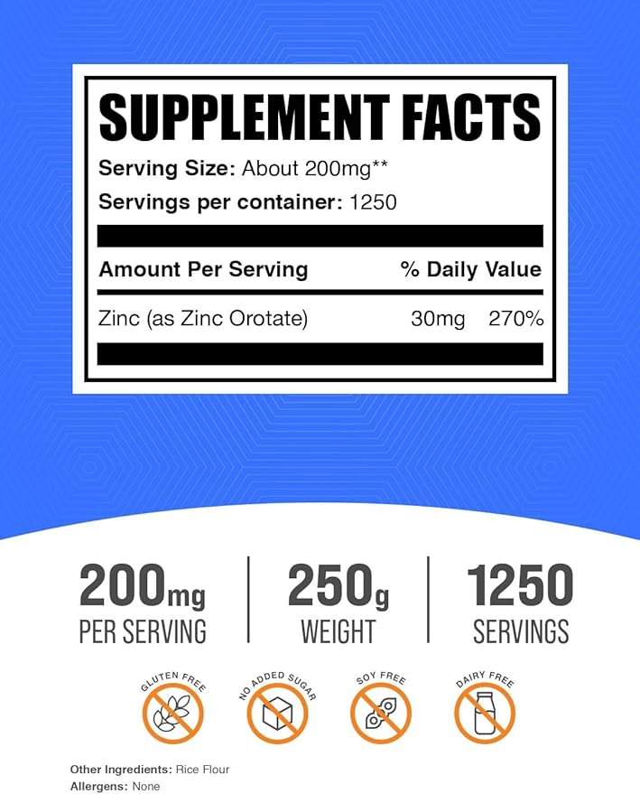 - Elevate your Nutritional Balance: With our Zinc supplement, you can supplement your diet with essential nutrients that support overall health. Zinc, in Zinc Ororate powder, plays a critical role in nutrient absorption and action, ensuring your body gets the most out of every meal.