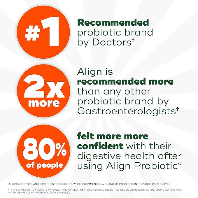 - THE PROBIOTIC BRAND PHYSICIANS RECOMMEND MOST: Align Probiotic is the #1 probiotic recommended by Gastroenterologists for over 15 years running. Doctors recommend Align Probiotic nearly 2x more than any other probiotic brand
