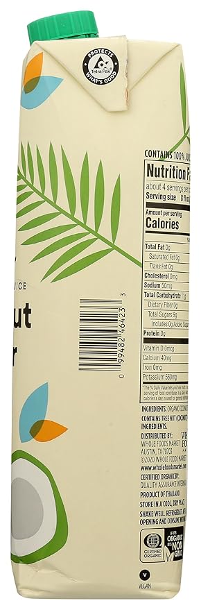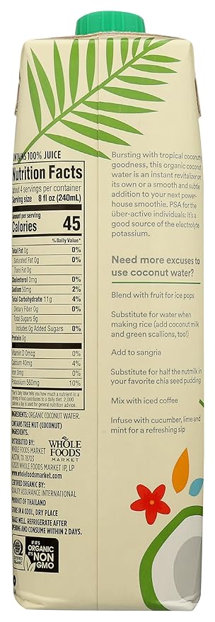 365 by Whole Foods Market, Organic Coconut Water, 100% Pulp-Free Juice, 33.8 Fl Oz