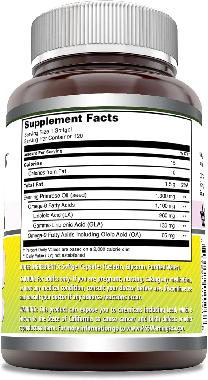 - Evening Primrose Oil 1300 Mg, 10% GLA, 120 Softgels Supplement