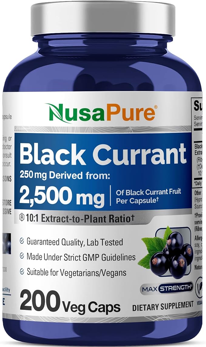 NusaPure Black Currant 10:1 Extract, 250 mg Equivalent to 2,500mg, per Veg Caps 200 Vegan, Non-GMO