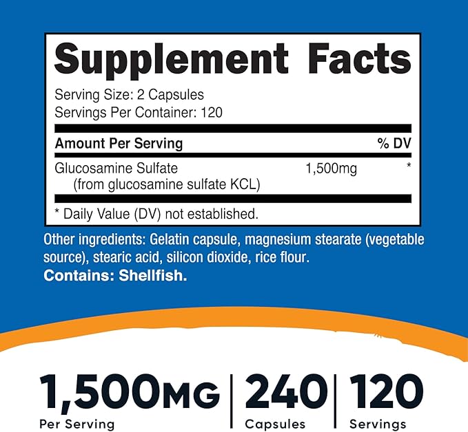 - 240 Capsules of Glucosamine Sulfate Per Bottle