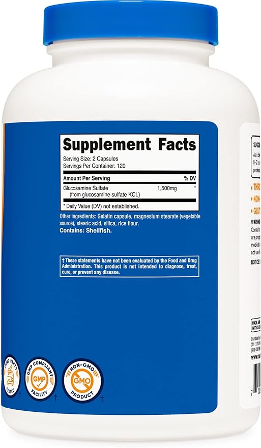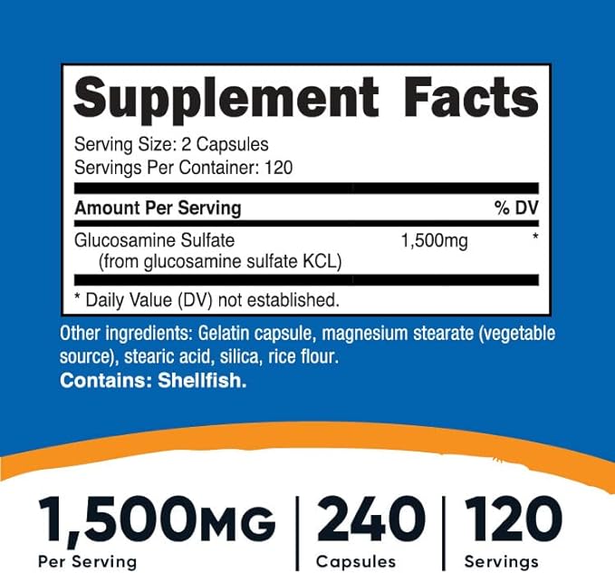 - 1500mg of Glucosamine Sulfate Per Serving (120 Servings ,750mg Per Capsule)