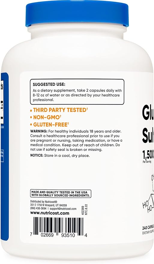 - 240 Capsules for 120 Servings of Glucosamine Sulfate Per Bottle