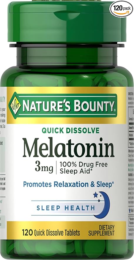 Nature's Bounty Melatonin, Promotes Relaxation & Sleep, 100% Drug Free Sleep Aid, 3 mg, 120 Quick Dissolve Tablets