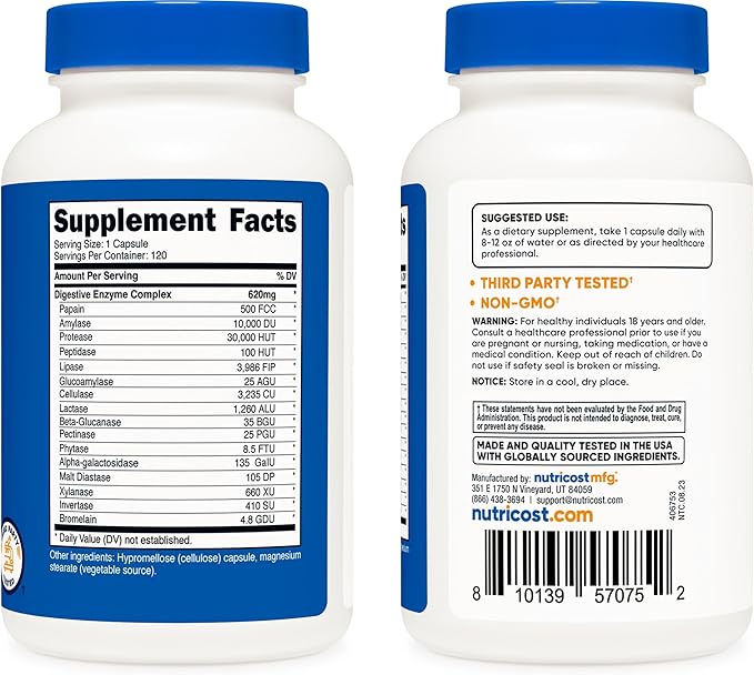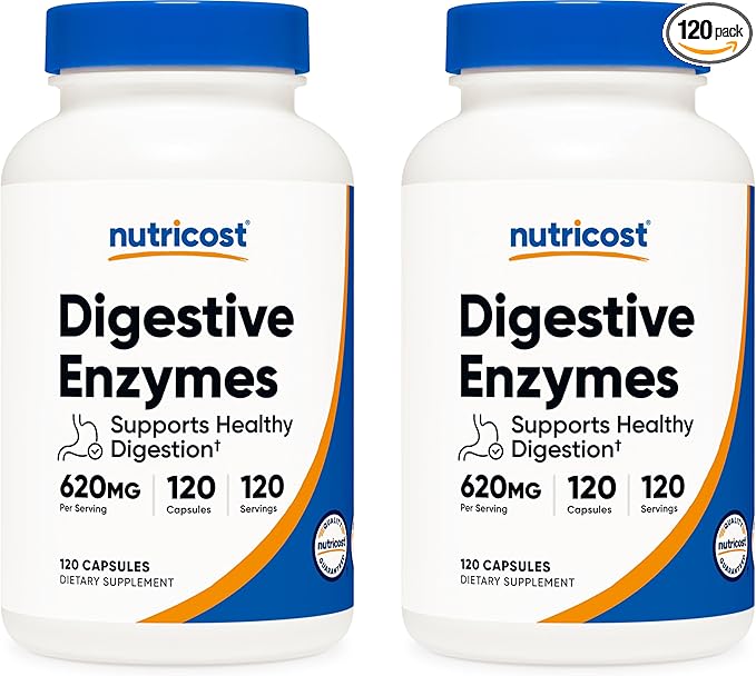 Nutricost Digestive Enzymes 620mg, 120 Veggie Capsules (2 Bottles) - Complete Digestive Enzyme Supplement