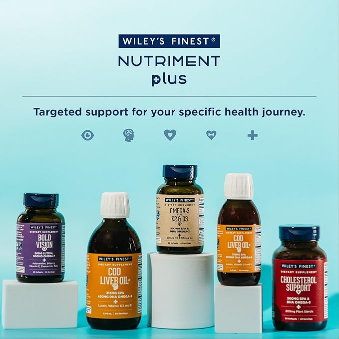 Wiley's Finest Wild Alaskan Fish Oil Vitamin K2 & D3 Softgels - 500mg of EPA and DHA Omega-3s for Bone and Heart Health Support - 60 Softgels (60 Servings)