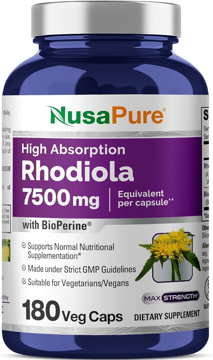 NusaPure Rhodiola Rosea 7,500mg 180 Veggie Capsules (Non-GMO, Extract 30:1, Vegan & Gluten-Free) Bioperine