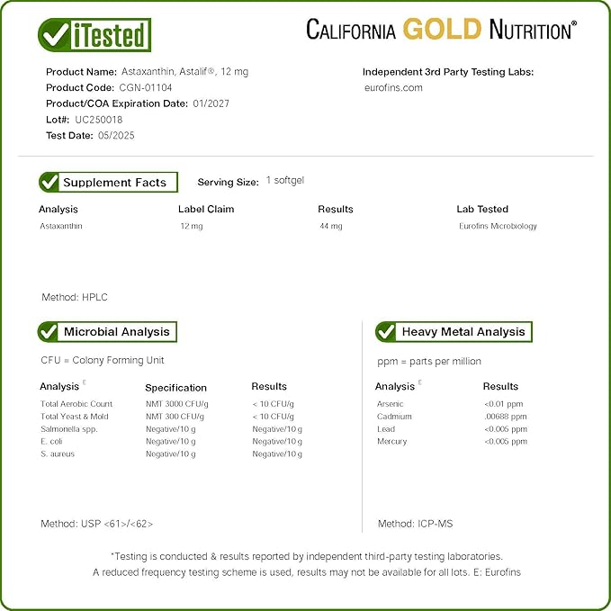 - COMMITMENT TO QUALITY: California Gold Nutrition strives to use quality ingredients in all formulations. This product features pure Icelandic astaxanthin and contains no gluten, GMOs, or soy.