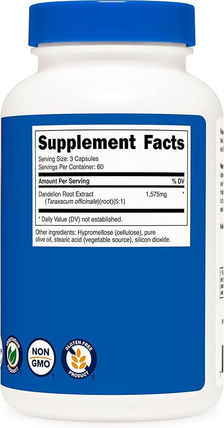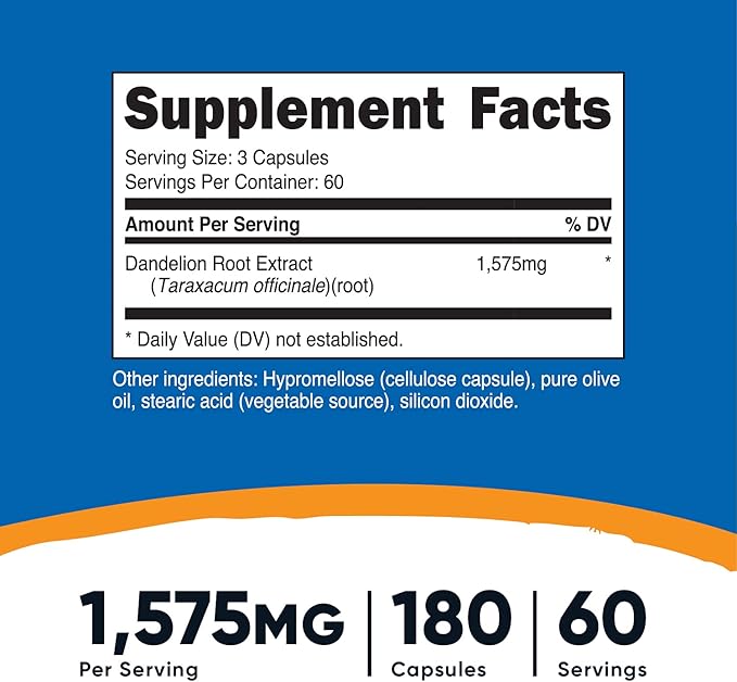 - 525mg of Dandelion Root Extract Per Capsule (60 Servings Per Bottle. 3 Bottles)
