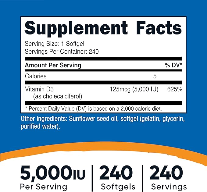 - Each Capsule Contains 5,000IU (125mcg) of Vitamin D3