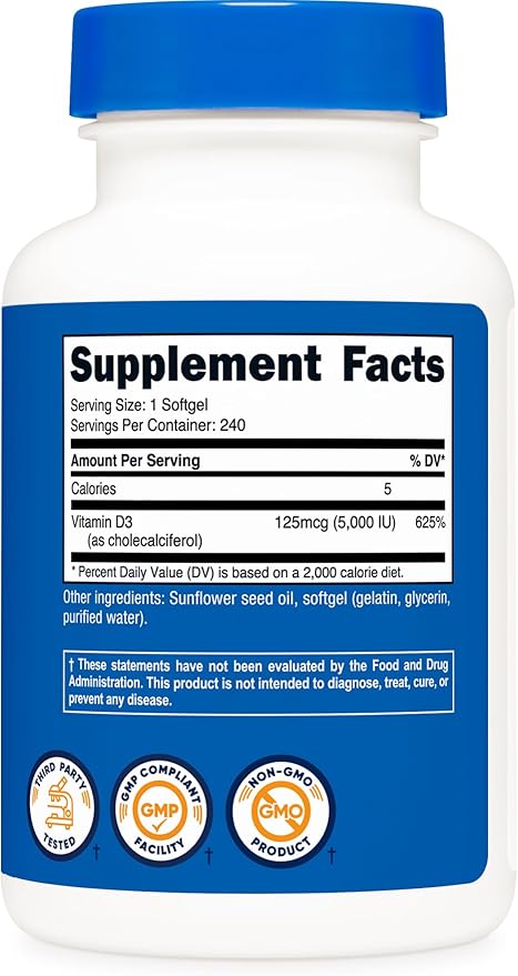 Nutricost Vitamin D3 5,000 IU (125mcg), 240 Softgels - Non-GMO and Gluten Free Vitamin D