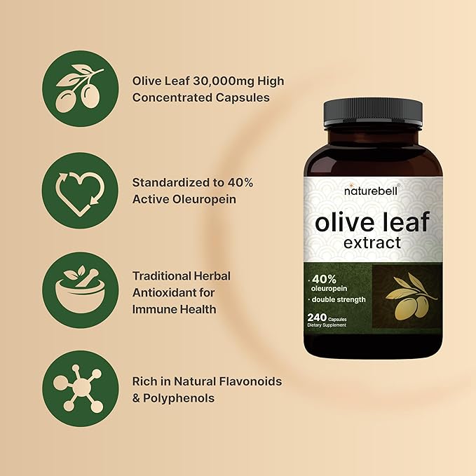 - Super strength olive leaf 30,000mg capsules, high concentrated 50:1 extract, standardized to retain a minimum of 40% active oleuropein per serving.