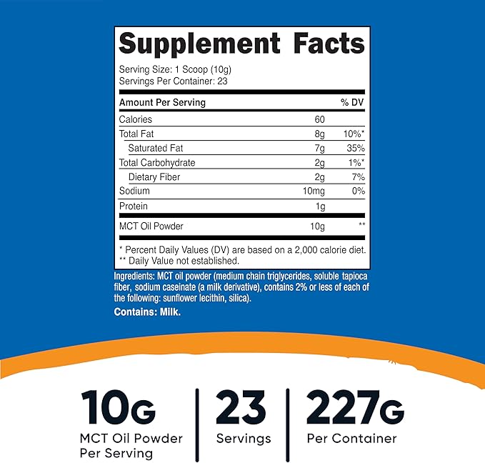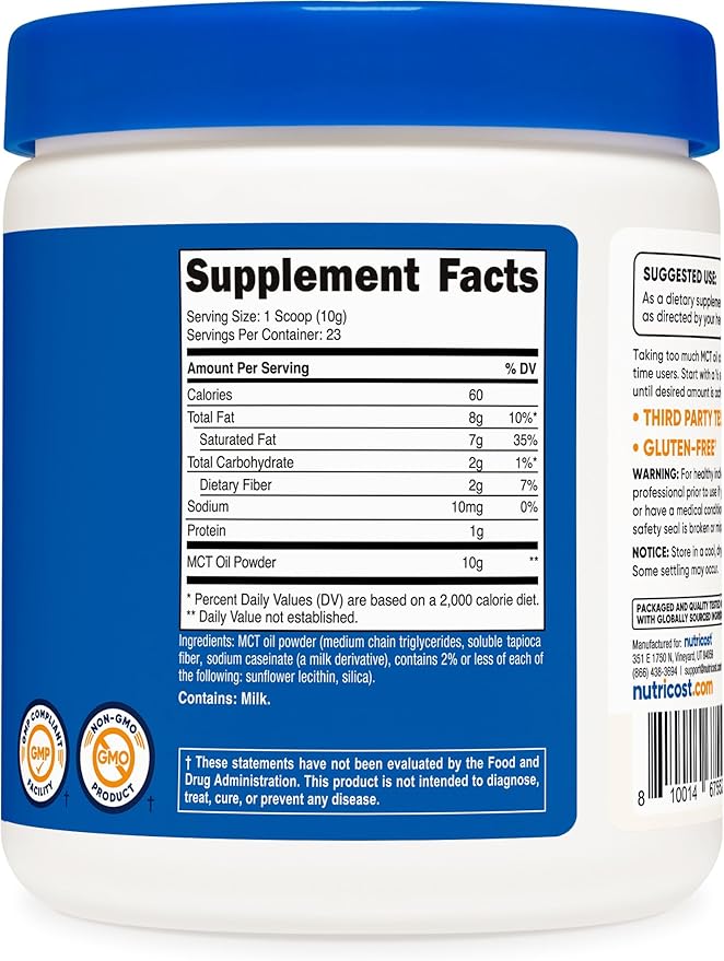 Nutricost Premium MCT Oil Powder .5LBS - Best For Keto, Ketosis, and Ketogenic Diets - Zero Net Carbs, Non-GMO and Gluten Free