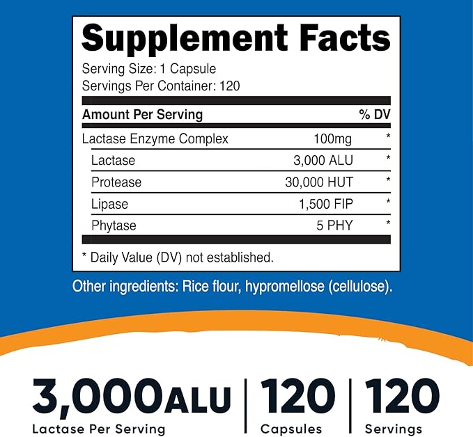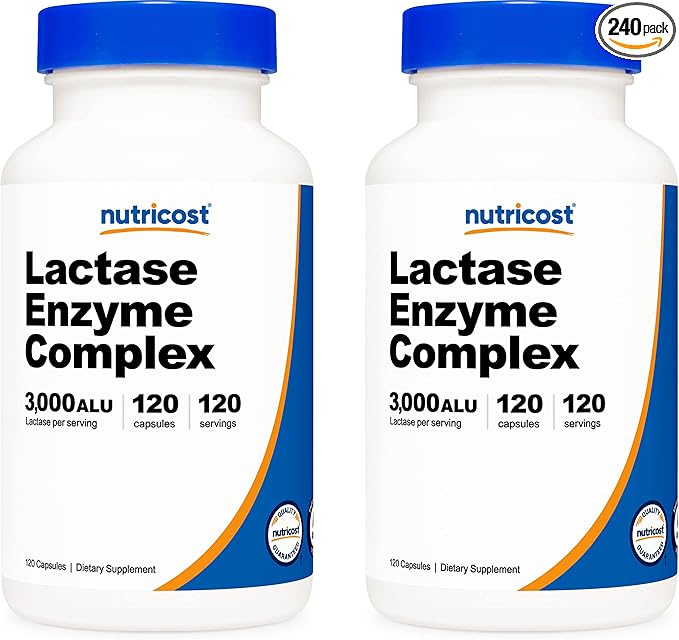 Nutricost Lactase Enzyme Complex 3,000 FCC ALU, 120 Veggie Capsules - Non-GMO, Gluten Free, 120 Servings (2 Bottles)