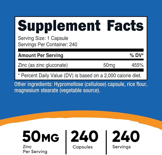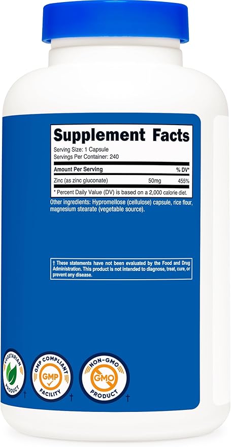 Nutricost Zinc Gluconate 240 Vegetarian Capsules (50mg) - Gluten Free and Non-GMO