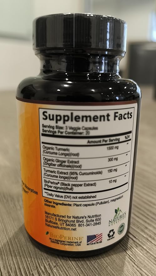 - TURMERIC CURCUMIN AND GINGER SUPPLEMENT: 95% curcuminoids best absorption with bioperine black pepper extract capsule capsules circumin complex cucurmin cumin curcuma garlic glucosamine non gmo for herbal joint support nature natures nutrition pill pills supplements supply 1000mg 120 1500mg 1950 2250mg 240 500 mg 500mg tumeric turneric vegan