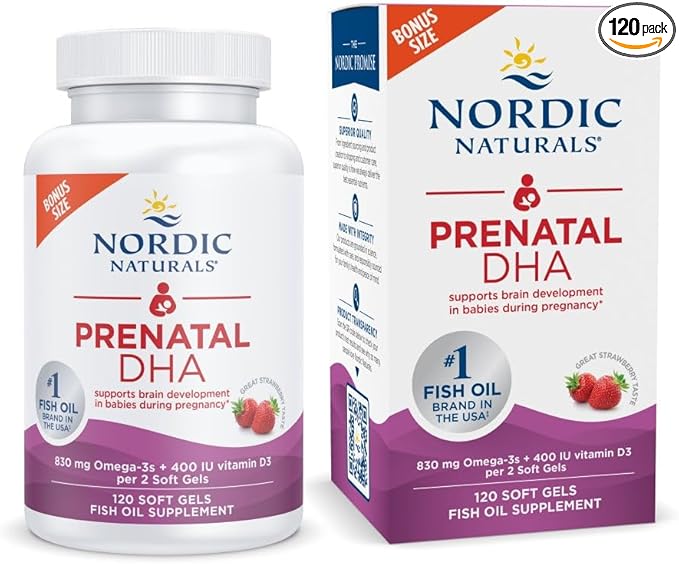 Nordic Naturals Prenatal DHA, Strawberry - 120 Soft Gels - 830 mg Omega-3 + 400 IU Vitamin D3 - Supports Brain Development in Babies During Pregnancy & Lactation - Non-GMO - 60 Servings