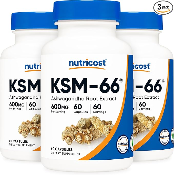 Nutricost KSM-66 Ashwagandha Root Extract 600mg, 60 Veggie Caps (3 Bottles) - 5% Withanolides - with BioPerine