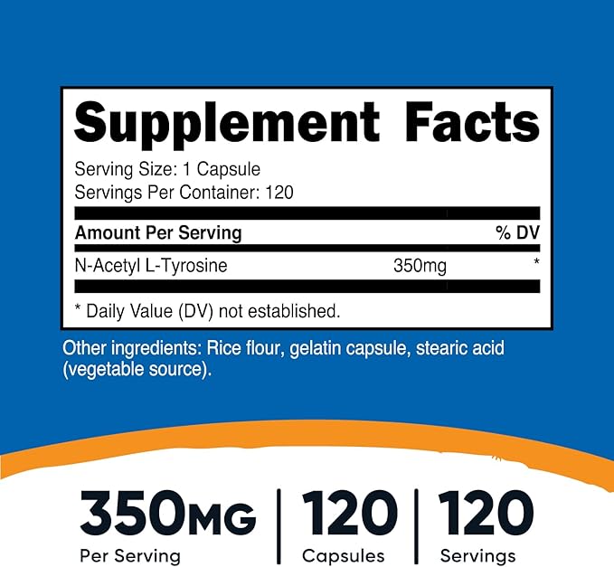 Nutricost N-Acetyl L-Tyrosine (NALT) 350mg, 120 Capsules (2 Bottles) - Gluten Free, Non-GMO