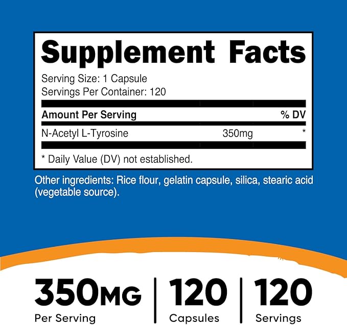 Nutricost N-Acetyl L-Tyrosine (NALT) 350mg, 120 Capsules - Gluten Free, Non-GMO