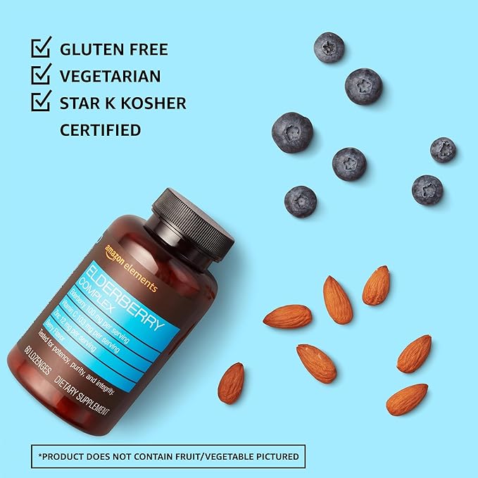 Amazon Elements Elderberry Complex Berry Flavored Immune System Support Lozenges, Adult, 60 Count, (Packaging may vary)