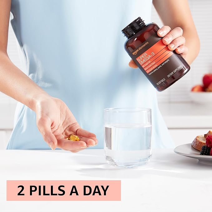 Amazon Elements Super Omega-3, EPA & DHA Omega-3 fatty acids (1280 mg per Serving, 2 Softgels), Natural Lemon Flavor, 120 Count (Packaging may vary)