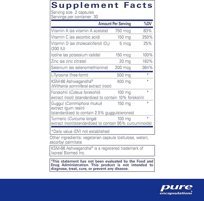 Pure Encapsulations Thyroid Support Complex - Supports Thyroid Health* - Antioxidant Infusion - with Ashwagandha & Iodine - Non-GMO & Vegetarian - 60 Capsules