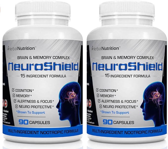 NeuroShield, Brain Supplement a Nootropic Brain Booster and Memory Supplement, Contains Huperzine A, Ginko Biloba, Bacopa Plus Antioxidants for Brain Health, Multi-Ingredients, 2 Bottles, 180 Capsules