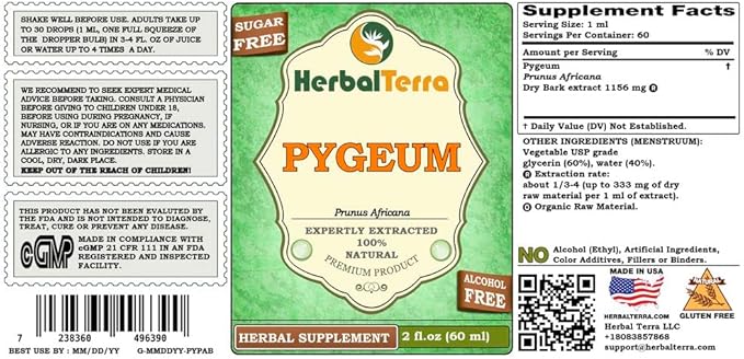 - We made this African Cherry Pygeum liquid extract using ONLY natural ingredients! This extract does not contain Alcohol, GMO, gluten, artificial colors, heavy metals, preservatives, pesticides or fertilizers!