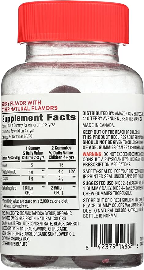 Amazon Brand - Mama Bear Vegan Probiotic, Berry, 60 Gummies, 1 Billion CFU per Gummy