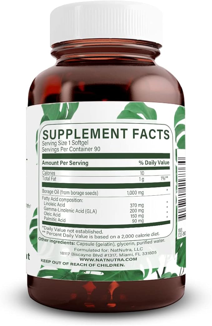 Natural Nutra Borage Oil, Maintain Skin Health, Support Better Heart Health, Improves Nerve Health, Help Overcome Joint paint, Help Reduce Pimple, Omega 6 Essential Fatty Acids Supplement 90 Softgels.