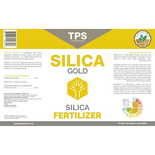 - STRENGTH FOR ALL PLANTS: TPS Nutrients Silica Gold is a bio-available silica that helps strengthen cell walls. This silica protects plants from stressful conditions.