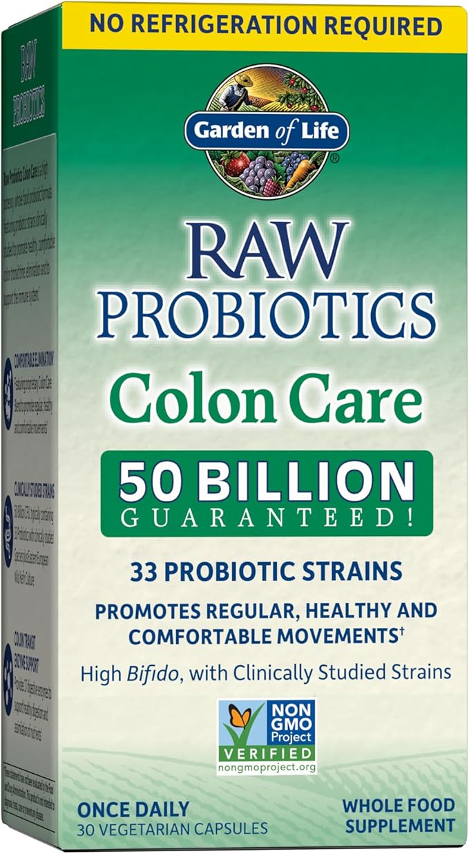 Garden of Life Probiotics for Women and Men - Raw Probiotics Colon Care 50 Billion CFU and Enzymes, Shelf Stable Once Daily Acidophilus Probiotic for Regularity and Immune Health Support, 30 Capsules