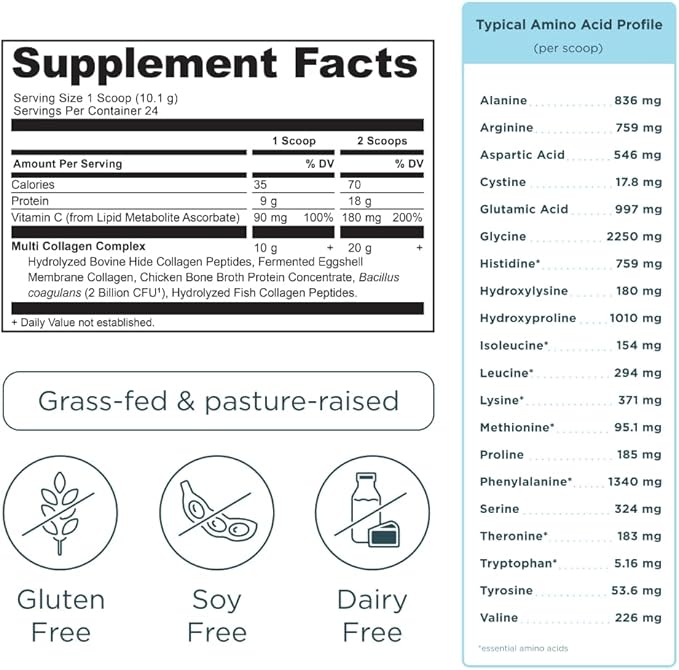 - You will receive (1) tub of Multi Collagen Protein Powder, Unflavored, 45 servings..