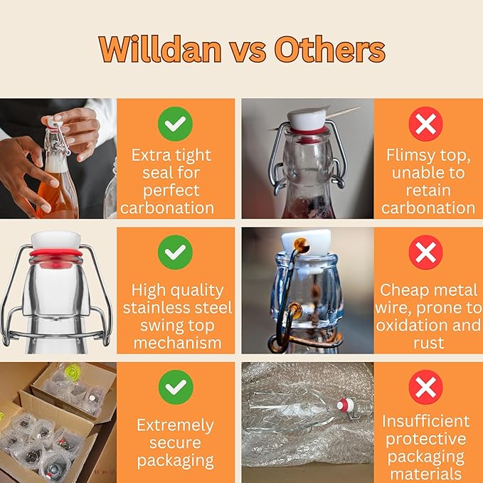 ![WILLDAN Swing Top Glass Bottles [1 Liter / 33 fl. oz.] [Pack of 6] Flip Top Brewing Bottle w/Leak Proof Stopper Lids for Fermentation, Kombucha, Mead, Vinegar, Beer, Kefir, Wine, Water, Soda](http://elevanaessentials.com/cdn/shop/files/81iJsDRRH-L._AC_SX679.jpg?v=1758944722&width=1445)