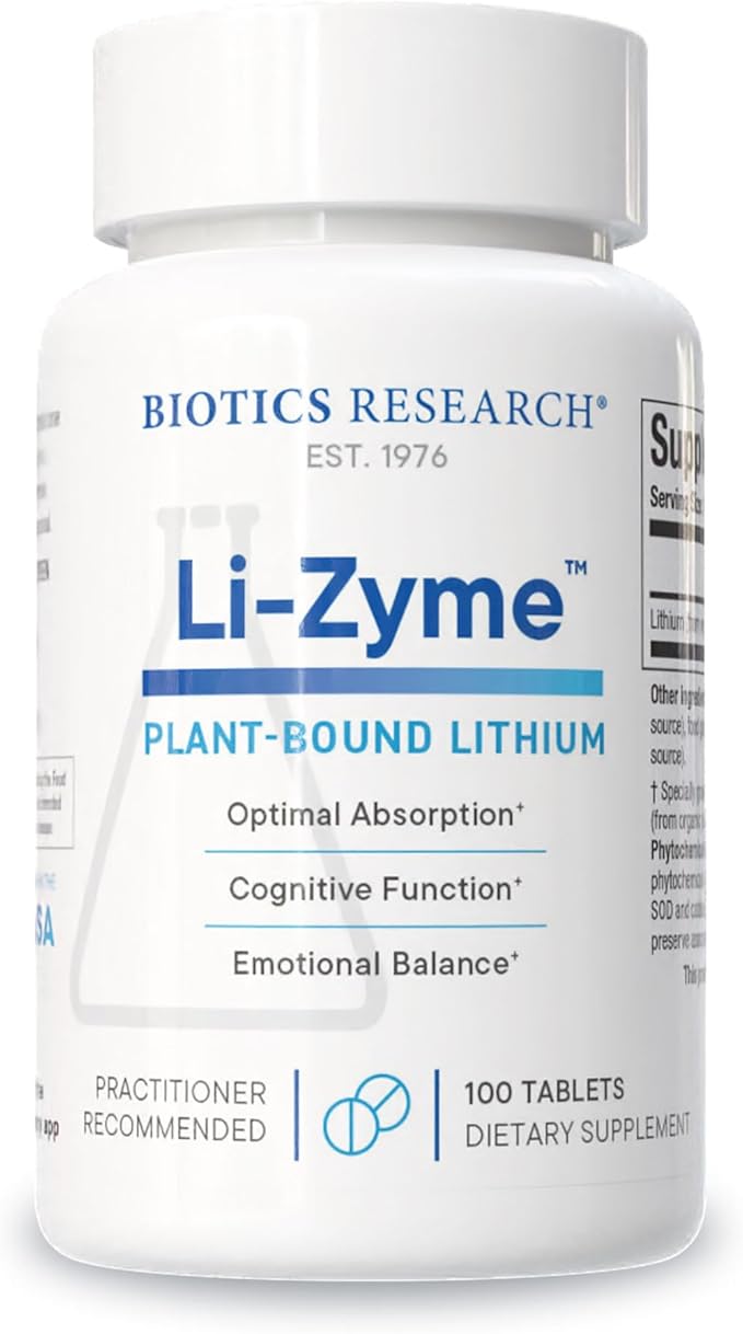 Biotics Research Li Zyme 50 micrograms, Lithium as a Whole Food, phytochemically Bound Lithium, Highly bioavailable, Supports Brain Function, Memory and Mood Support, 100 Tablets