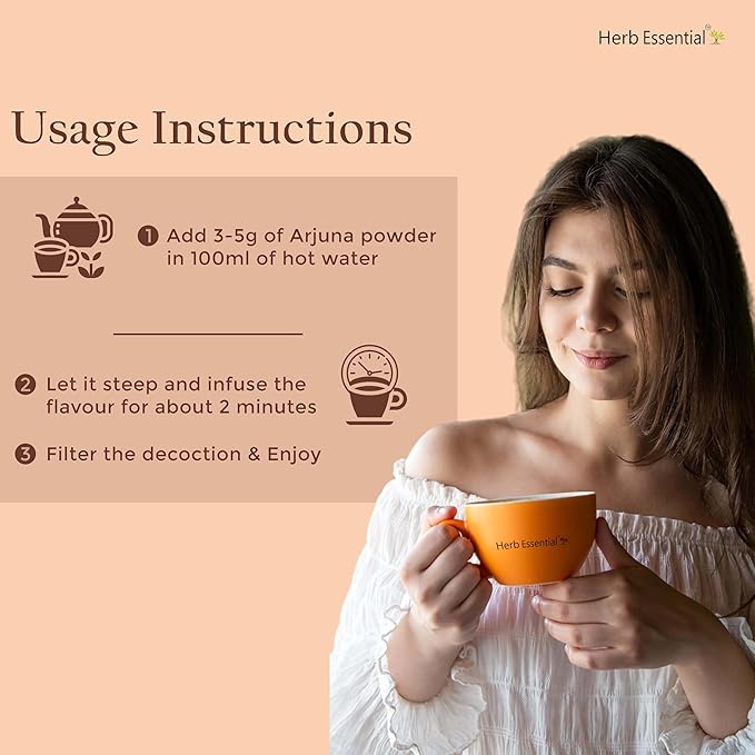 - Made with Goodness- Herb Essenial Arjuna Powder is GMP Certified, suitable for vegetarians and contain no artificial colors, flavors, or preservatives. It delivers the pure benefits of Arjuna in its most natural form.